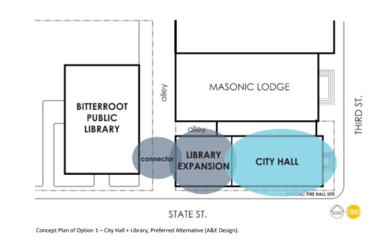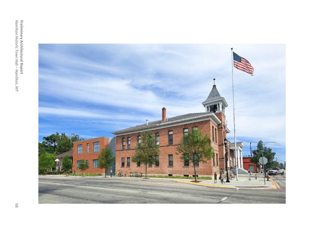 Pictured is a conceptual rendering of the historic town hall renovation/library expansion and a simple line drawing of the expansion from the preliminary architecture report